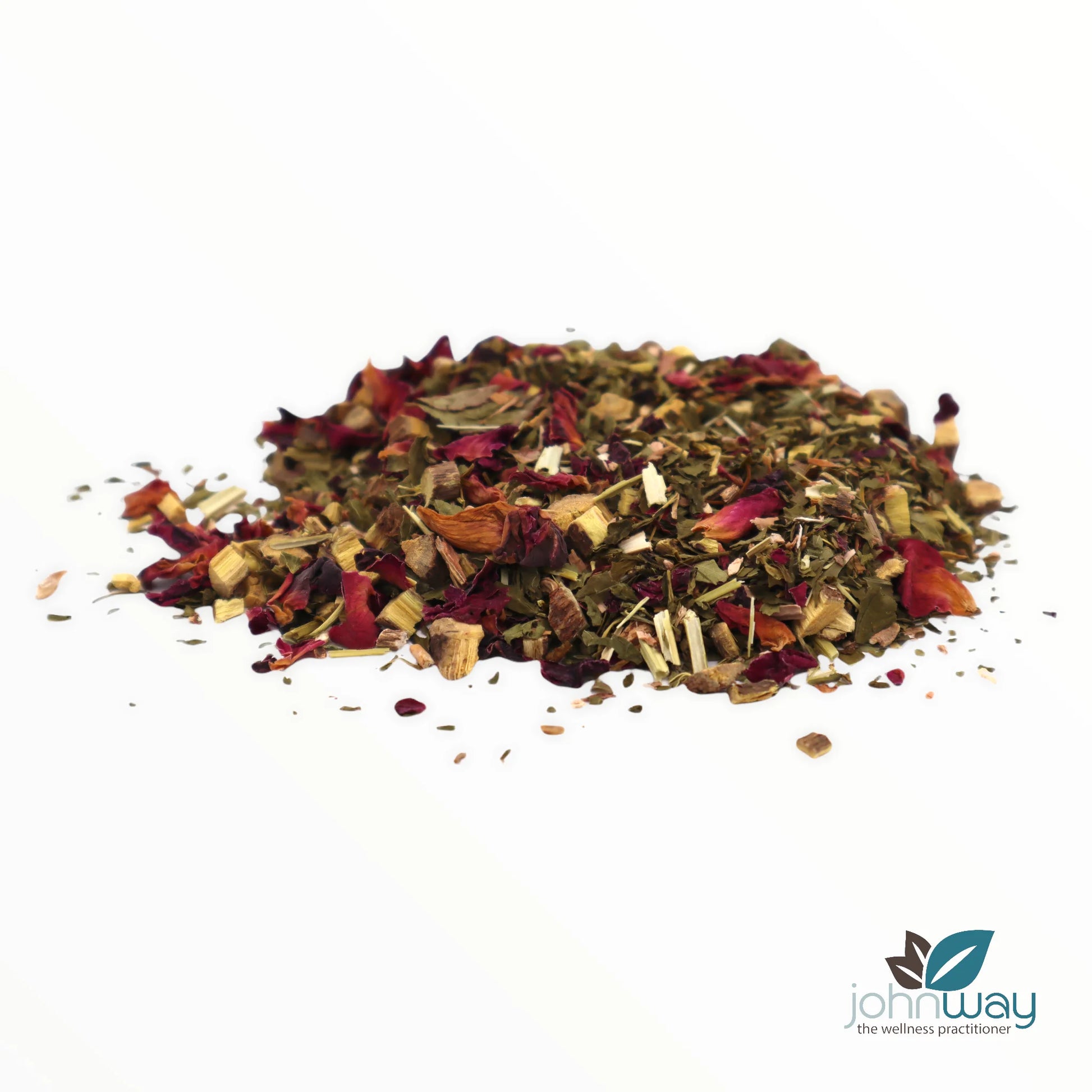Skullcap, Smilax, Lady’s Mantle, Rose Petals, Liquorice Root.