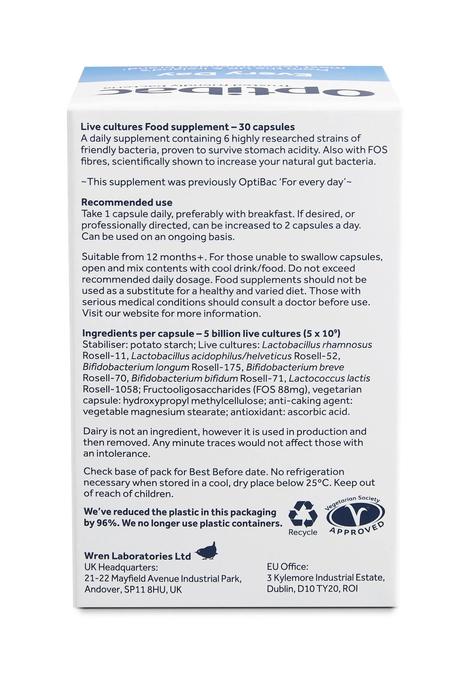 Optibac Every Day is especially for those wishing to take a high quality daily live cultures supplement, from the UK & Ireland’s most trusted and recommended friendly bacteria brand*.