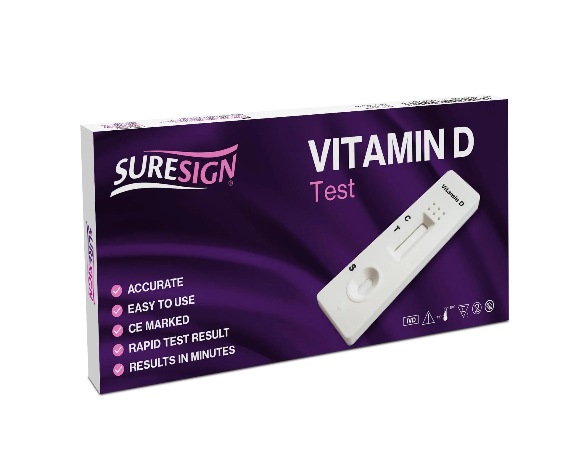 The Suresign Vitamin D Test detects low levels of vitamin D in human fingerstick blood to aid in the screening for Vitamin D deficiency.